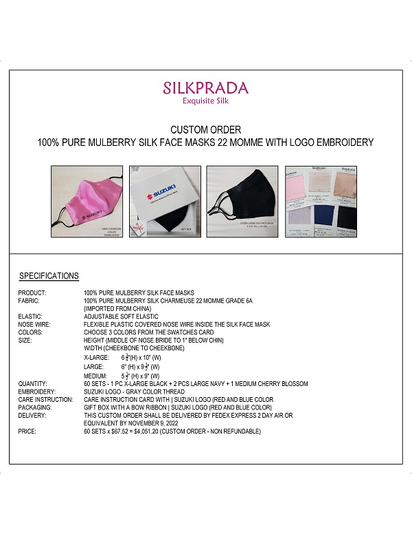 TOTAL PRICE: 60 SETS x $67.52 = $4,051.20 (CUSTOM ORDER – NON REFUNDABLE)