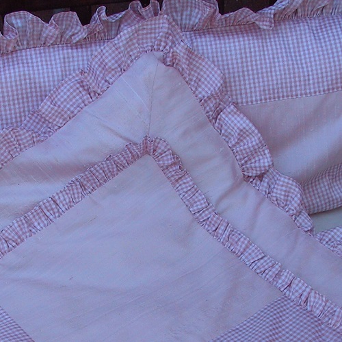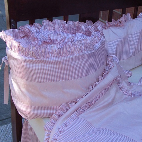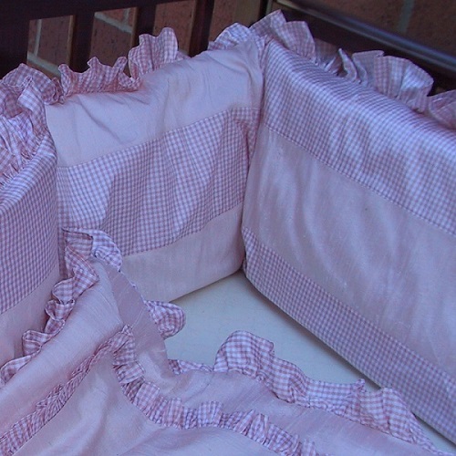 This Silk Baby Crib Dupioni Gingham Bedding Set is made of: